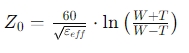 特性阻抗(Z0)由傳輸線的物理結(jié)構(gòu)(如寬度、厚度、介電常數(shù)等)決定,其計(jì)算公式根據(jù)不同類型的傳輸線而異。例如,微帶線的特性阻抗計(jì)算公式為: