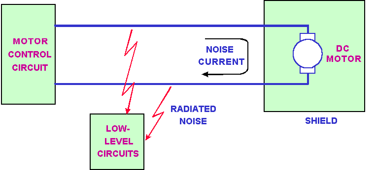 了解噪音如何傳輸有助于辨識(shí)電路內(nèi)部的電磁干擾問(wèn)題。噪音的發(fā)生必需要有來(lái)源(source)、藕合路徑(couplingpath)以及易感染的接收器(susceptiblereceptor)[Ott,1988],這三者必需一起出現(xiàn)才會(huì)有EMI問(wèn)題的存在,圖1說(shuō)明EMI如何以藕合方式進(jìn)入一個(gè)系統(tǒng)。因此,若是三者之一被排除于系統(tǒng)之外或被減少,干擾才會(huì)消失或降低。圖1是以馬達(dá)控制為例的EMI說(shuō)明,其中功率級(jí)至馬達(dá)的線圈電流是產(chǎn)生EMI的來(lái)源,控制器的低階信號(hào)(數(shù)位或類(lèi)比信號(hào))是易受干擾的接收器,藕合路徑則可能是經(jīng)由傳導(dǎo)方式(經(jīng)由電源或地線)或輻射方式。